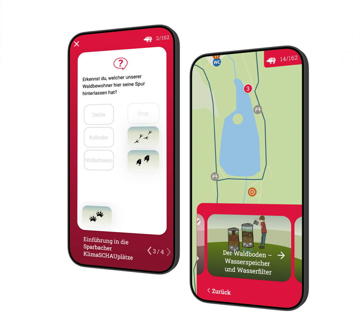 Die App flankiert eine Route mit neun KlimaSCHAUplätzen im Naturpark Sparbach und macht Besucher*innen zu echten Klimawaldexpert*innen. Der Waldboden als CO2-Speicher oder hitzeresistente Baumarten der Zukunft – an jedem Stop vermitteln multimediale Inhalte und Quizzes unterschiedliche Aspekte zum Thema Klima und Wald.
