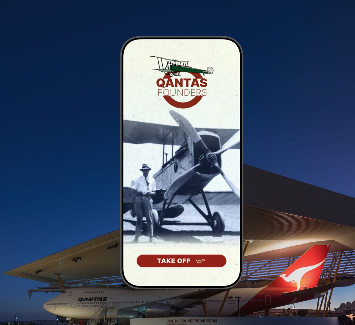 Die Navigation innerhalb der App ist nicht nur funktional, sondern auch thematisch in Szene gesetzt: Animierte Marshaller – wie sie im realen Flugfeldbetrieb eingesetzt werden – führen Besucher*innen mit authentischen Handsignalen über das weitläufige Gelände des Qantas Founders Museums.