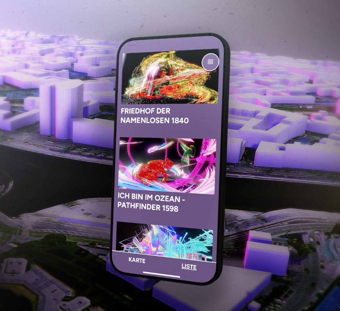 Mit K1_Art verwandelt sich die Stadt in eine Galerie für digitale Kunst. Eine interaktive Karte zeigt die Standorte der Werke, die im AR-Player aus allen Perspektiven erkunden sind. Wer nicht vor Ort ist, kann die Augmented Reality-Kunstwerke auch bequem im eigenen Wohnzimmer erleben.